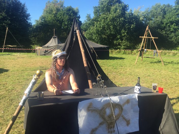 Dieses Jahr stand uns der Lagerturm als nützlicher Taufoperator zur Verfügung. Das handwerkliche Geschick der Vollstrecker entwickelte die Schnur des Schreckens. Jeder Täufling wird nacheinander vom Gericht angeklagt – in diesem Jahr vom angsteinflößenden „Depressiven Höhlenmensch aus Schottland“!
